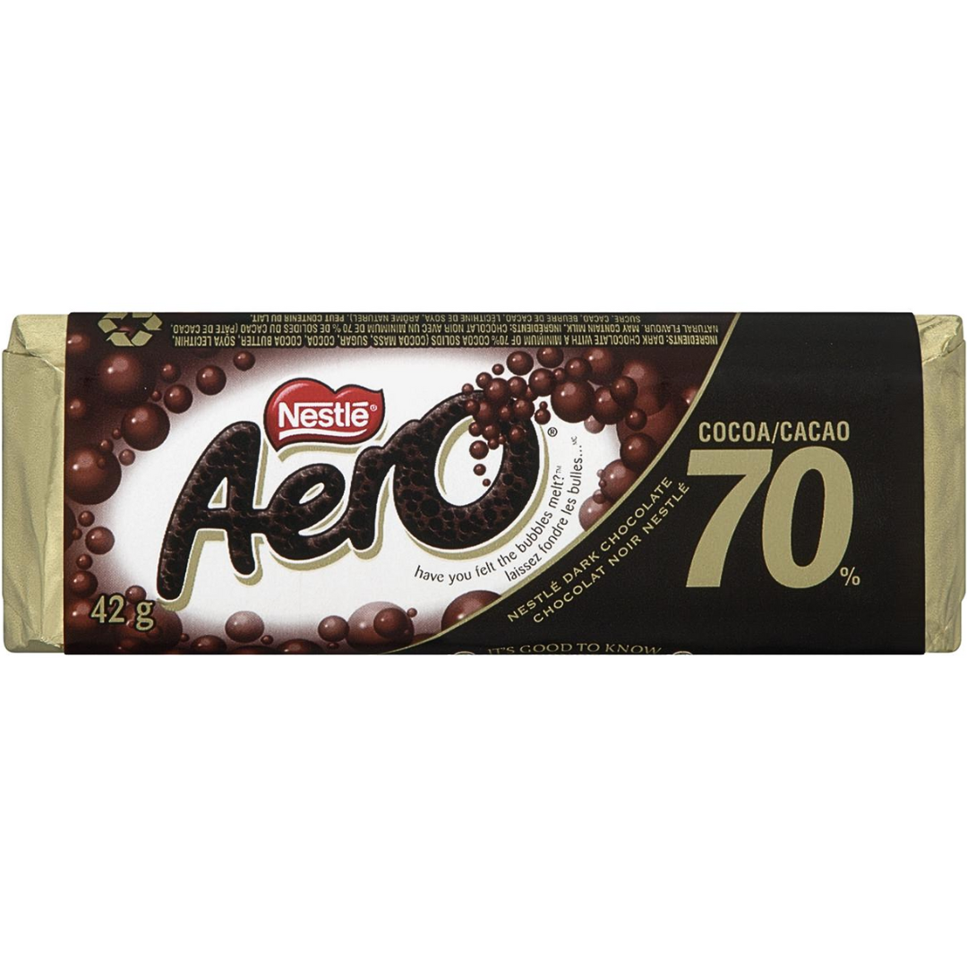 Smooth and intense dark chocolate with 70% cacao and Aero’s signature bubbly texture. Rich in flavour and light on the palate — a uniquely satisfying dark chocolate experience.