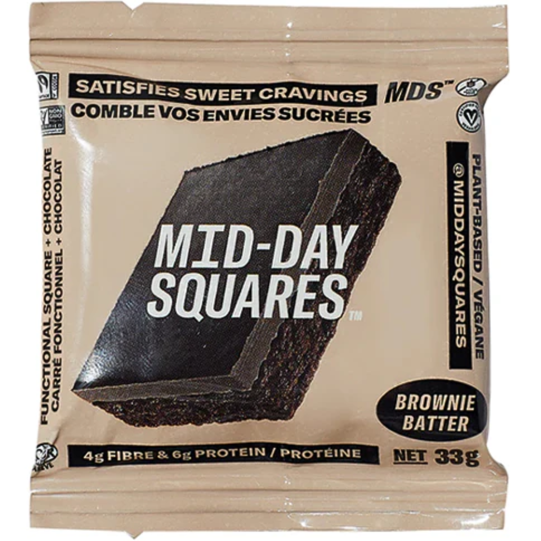 Calling all brownie lovers! MIDDAY SQUARES BROWNIE BATTER is the perfect way to satisfy your sweet tooth and fuel your day. Imagine a chewy, soft texture that melts in your mouth, revealing the rich, decadent flavour of brownie batter. Let the sweet, fudgy brownie batter essence tantalize your senses and transport you to a world of creamy bliss. These squares are the perfect way to enjoy a healthy and delicious treat that’s full of flavor and function! Try MIDDAY SQUARES BROWNIE BATTER today and experience the difference!